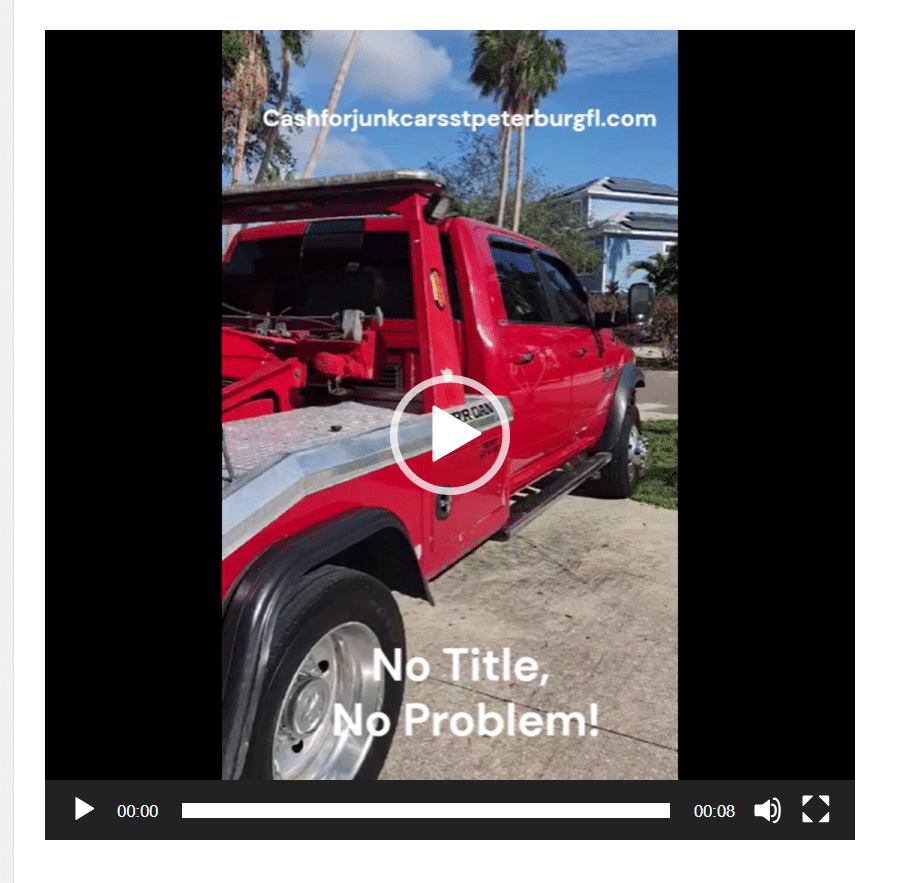 If you need cash for a car (or other vehicle or watercraft) but you do NOT have a title, Cash for Junk Cars St Petersburg FL can help. Many people believe that they cannot scrap a car in Pinellas County or sell their old or unwanted vehicles because they don’t have a title. Some consider applying to the DMV for a lost title, but the expense, time and hassle of doing so may not be feasible. If your car does not run, or you have a vehicle that is unwanted and you feel stuck, contact Cash For Junk Cars St Petersburg FL